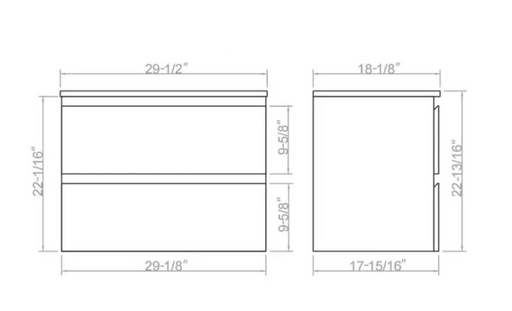 Size:29.5"x18"x34.6"PVC material compatible poly basin and ceramic counter top*Faucets not included *