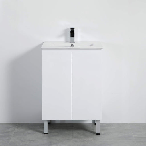 Size:23.6"x18"x34.6"PVC material compatible poly basin and ceramic counter top*Faucets not included*