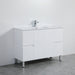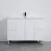 Enhance your bathroom with this modern PVC Bathroom Vanity With Ceramic Top, measuring 47.2"x18"x34.6" Constructed from high-quality PVC material, this vanity is moisture-resistant, durable, and designed for long-term use in a variety of bathroom environments.