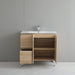 Constructed from high-quality PVC material, the vanity cabinet provides excellent resistance to moisture and humidity, ensuring long-lasting performance in bathroom environments. The smooth ceramic countertop is paired with a compatible poly basin, creating a sleek, easy-to-clean surface suitable for daily use. Supported by sturdy legs, the vanity delivers enhanced stability while maintaining a modern, open look.