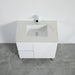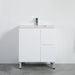 The smooth ceramic countertop is paired with a compatible poly basin, offering a clean and refined appearance along with a practical, easy-to-maintain surface. Its well-balanced proportions make it an excellent choice for small to medium-sized bathrooms, powder rooms, or guest bathrooms, blending seamlessly with modern, minimalist, or classic bathroom styles.