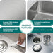 - R10° Rounded Corner Design for Easy Cleaning: These kithchen/bar sink features an R10° rounded corner design, combined with a commercial-grade brushed finish, making the surface smooth and easy to clean.